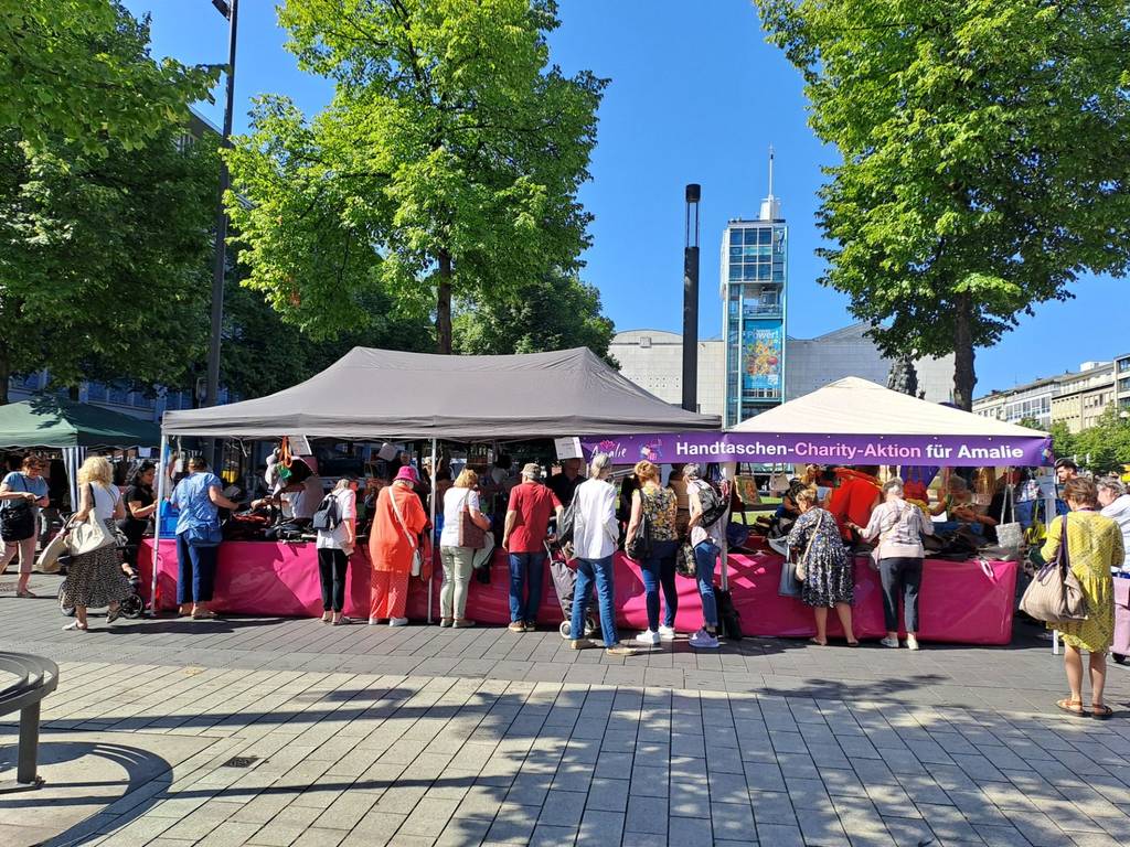 Auch Mannheims Bürgermeister Thorsten Riehle und einige Stadträtinnen war am Stand aktiv und boten Taschen an. „Wir sind überwältigt von der großen Unterstützung, die direkt aus der Mitte der Gesellschaft kommt“, sagt Astrid Fehrenbach, Leiterin der Beratungsstelle Amalie. „Die Aktion hat inzwischen Strahlkraft über Mannheim hinaus entwickelt.“ Mehr als 45 Helferinnen und Helfer engagierten sich direkt vor Ort, über 200 Spenderinnen brachten ihre Taschen zu den Sammelstellen in Mannheim und Schwetzingen. Mitinitiatorin Ute Münch von „Frauen im Quadrat“ (ehemals Deutscher Frauenring e.V.) betont: „Es macht uns stolz, dass wir durch die Aktion sowohl finanzielle Mittel als auch Aufmerksamkeit für die Situation der Frauen gewinnen. Diese Frauen brauchen unsere Solidarität.“