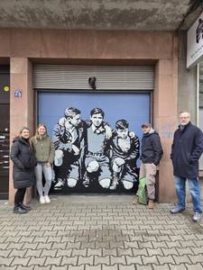 Die künstlerische Umsetzung erfolgte mithilfe einer Schablonentechnik. Mittels einer VR-Brille wurde das historische Foto auf ein zuvor graues Garagentor projiziert und anschließend mehrschichtig mit Lack umgesetzt. Rund vier junge Erwachsene arbeiteten mehrere Tage an dem Wandbild. Tilo Dornbusch vom Fanprojekt betont: „Fanprojekte haben einen jugendhausähnlichen Charakter. Diese Aktion ist beispielhaft dafür, wie politische Bildung und kreative Ausdrucksformen zusammenwirken können.“